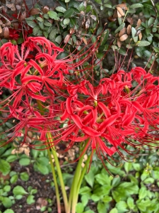日高神社の境内で、真っ赤な彼岸花が咲いていました。